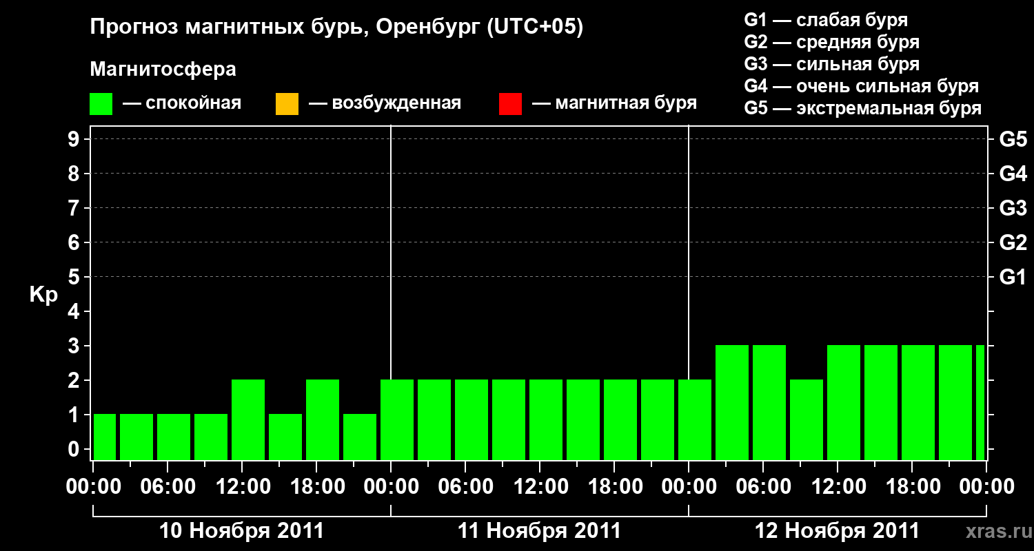 Прогноз магнитных бурь в Оренбурге — 10 ноября 2011 года