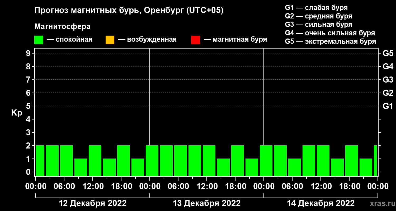Прогноз магнитных бурь в Оренбурге — 12 декабря 2022 года