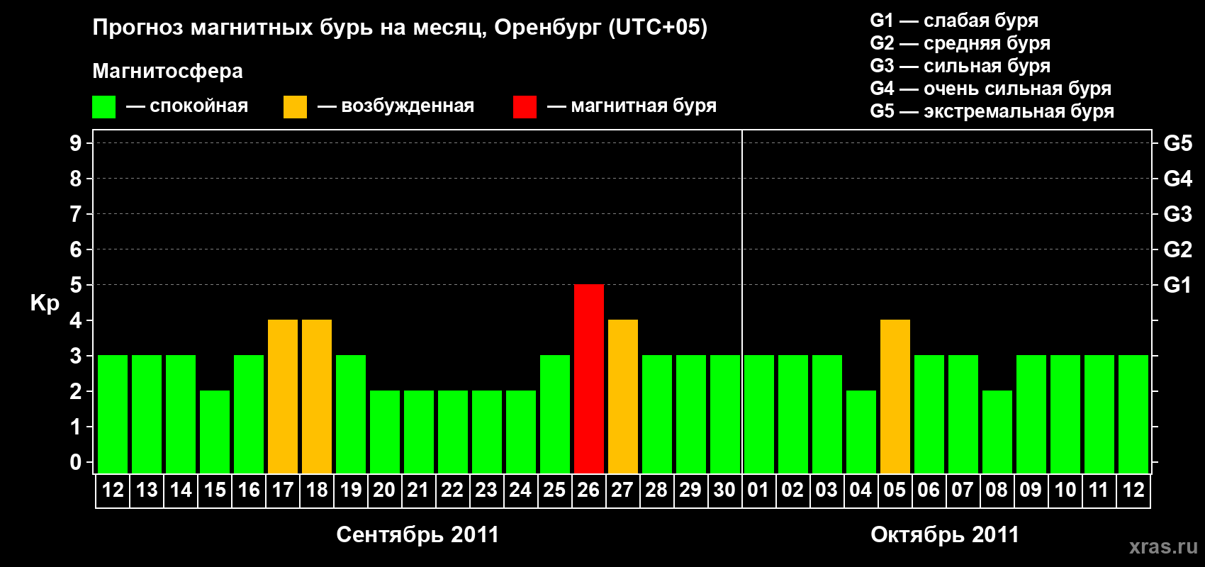 Прогноз магнитных бурь в Оренбурге — 12 сентября 2011 года