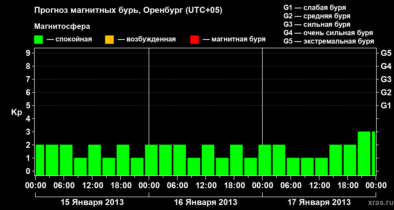 Прогноз магнитных бурь в Оренбурге — 15 января 2013 года