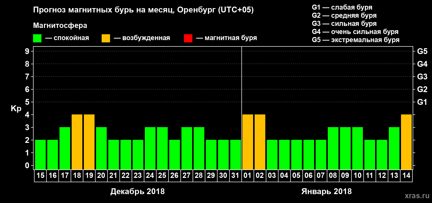 Прогноз магнитных бурь в Оренбурге на 15 декабря 2017 года