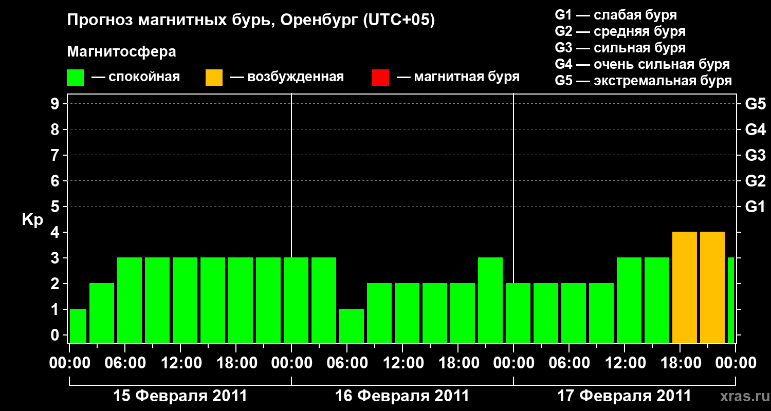 Прогноз магнитных бурь в Оренбурге — 15 февраля 2011 года