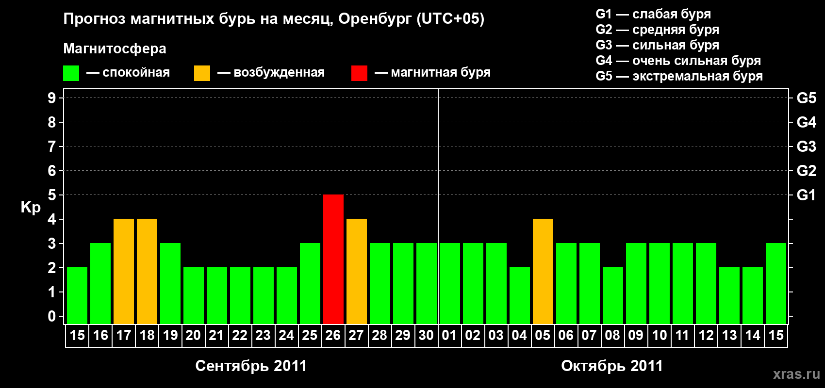 Прогноз магнитных бурь в Оренбурге на 15 сентября 2011 года