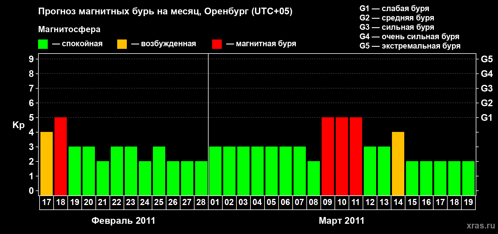 Прогноз магнитных бурь в Оренбурге — 17 февраля 2011 года