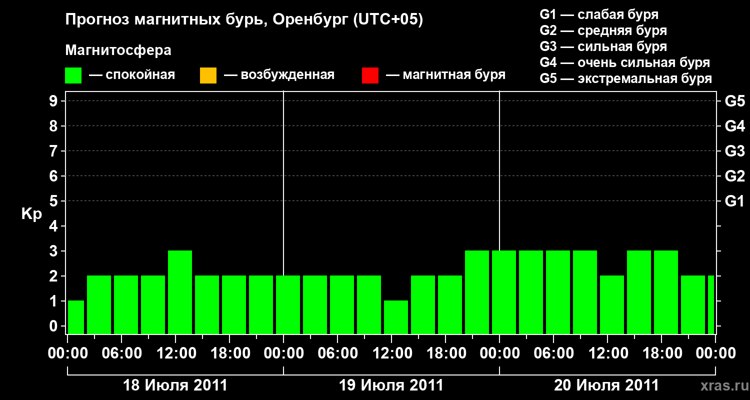 Прогноз магнитных бурь в Оренбурге — 18 июля 2011 года