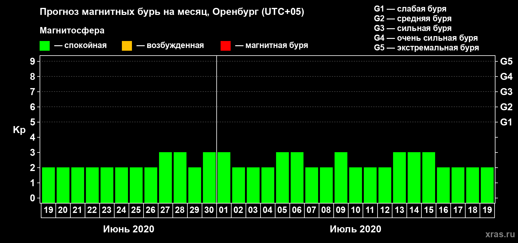 Прогноз магнитных бурь в Оренбурге на 19 июня 2020 года