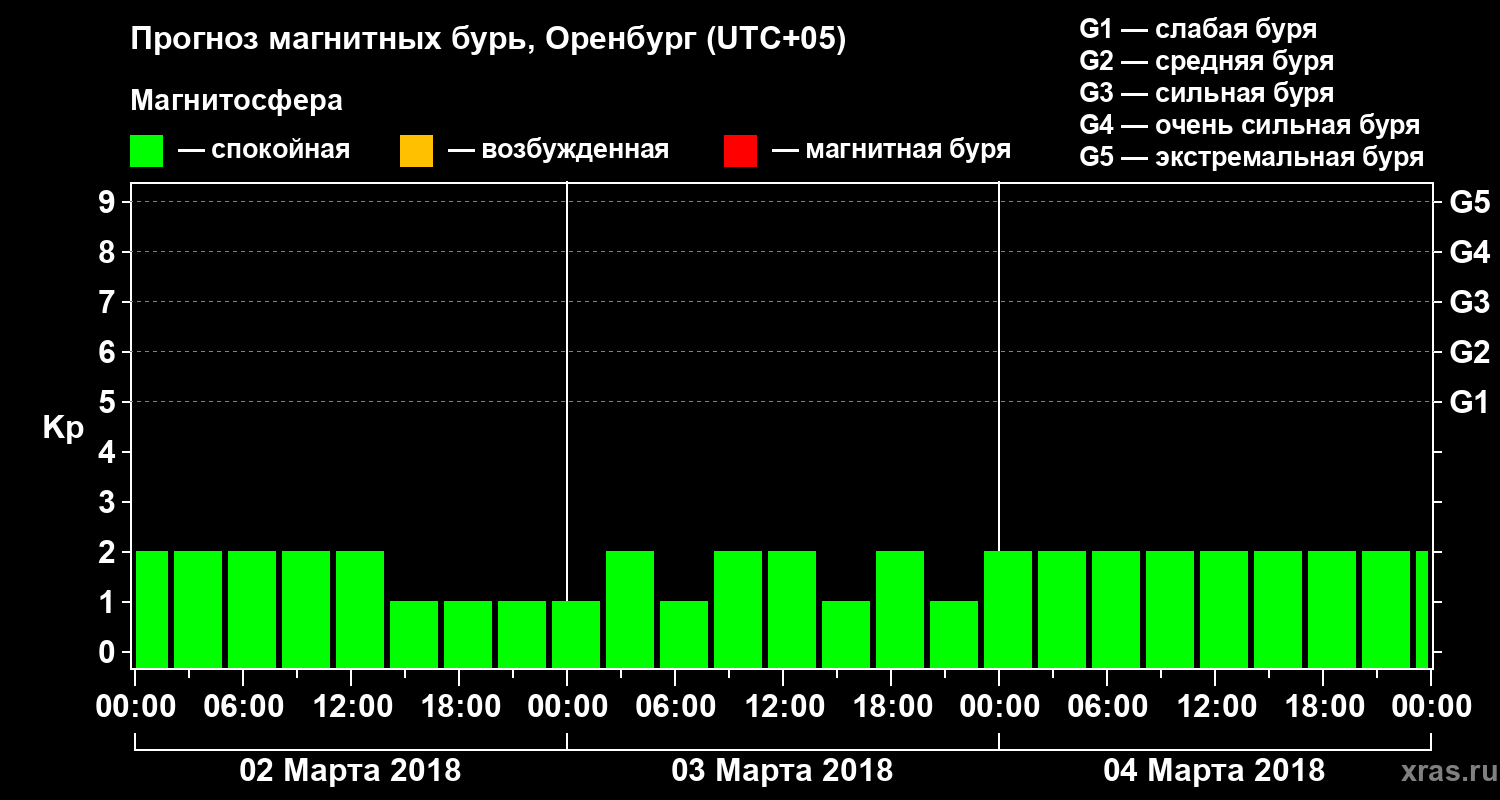 Прогноз магнитных бурь в Оренбурге на 2 марта 2018 года