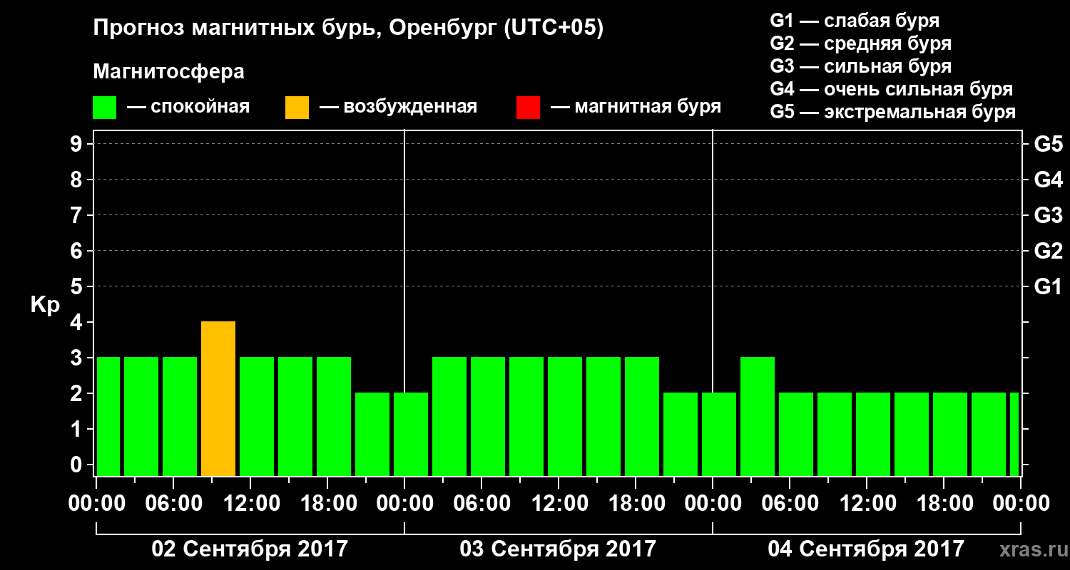 Прогноз магнитных бурь в Оренбурге на 2 сентября 2017 года