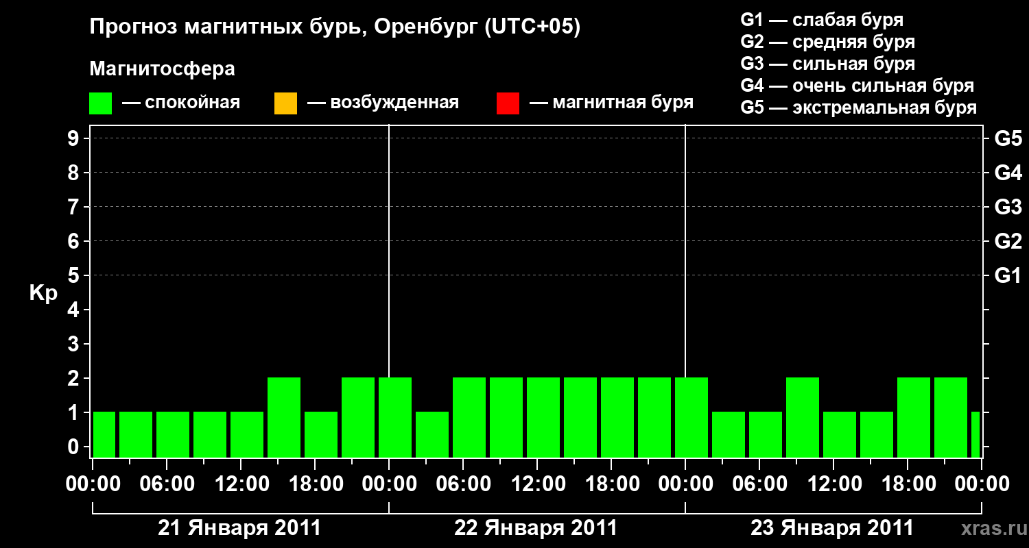Прогноз магнитных бурь в Оренбурге — 21 января 2011 года