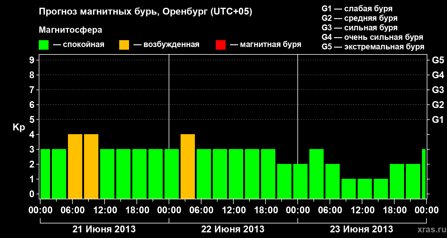 Прогноз магнитных бурь в Оренбурге — 21 июня 2013 года