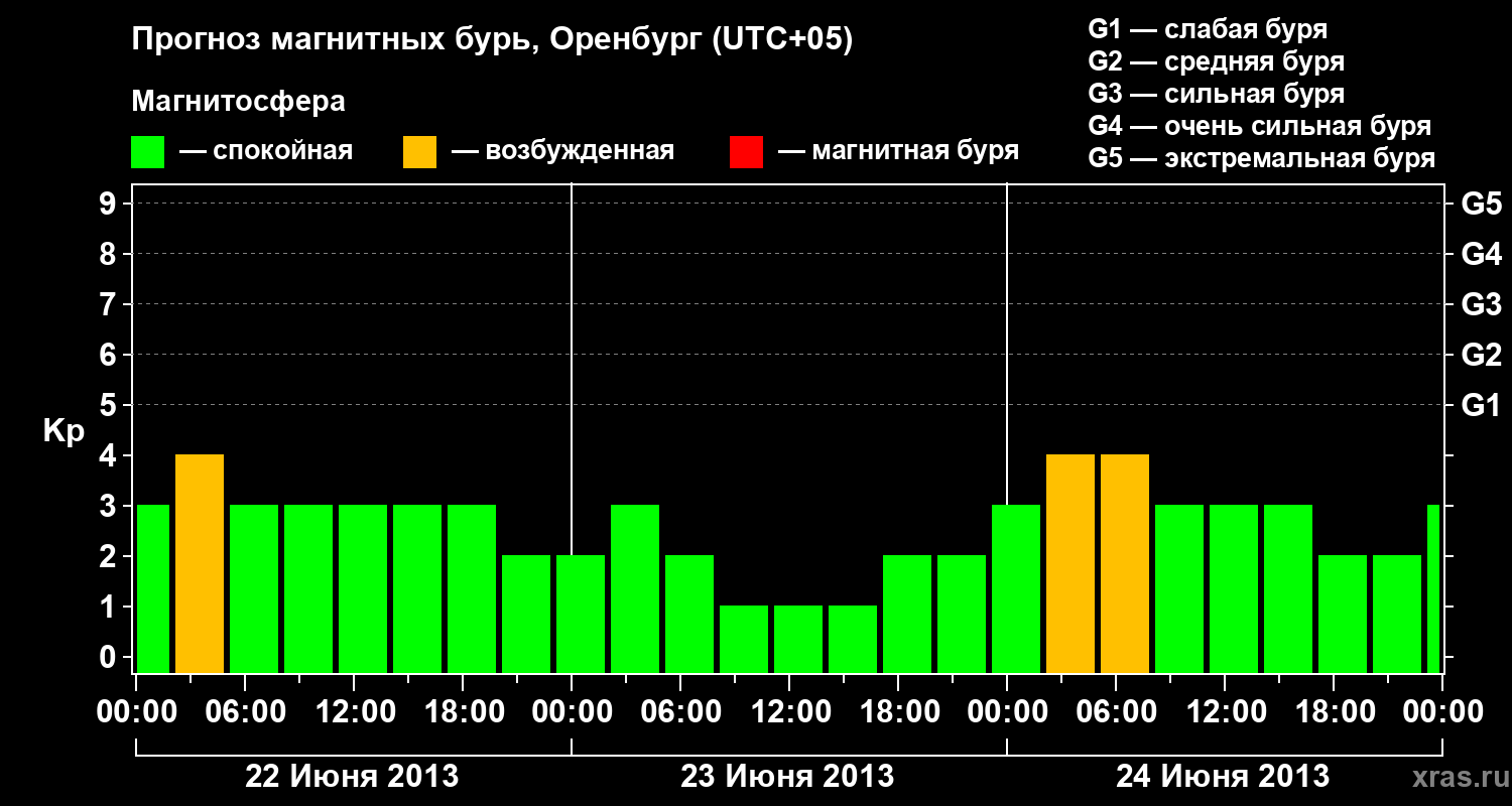Прогноз магнитных бурь в Оренбурге — 22 июня 2013 года