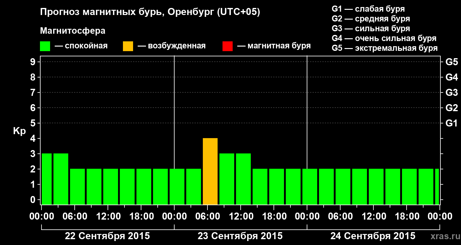 Прогноз магнитных бурь в Оренбурге на 22 сентября 2015 года