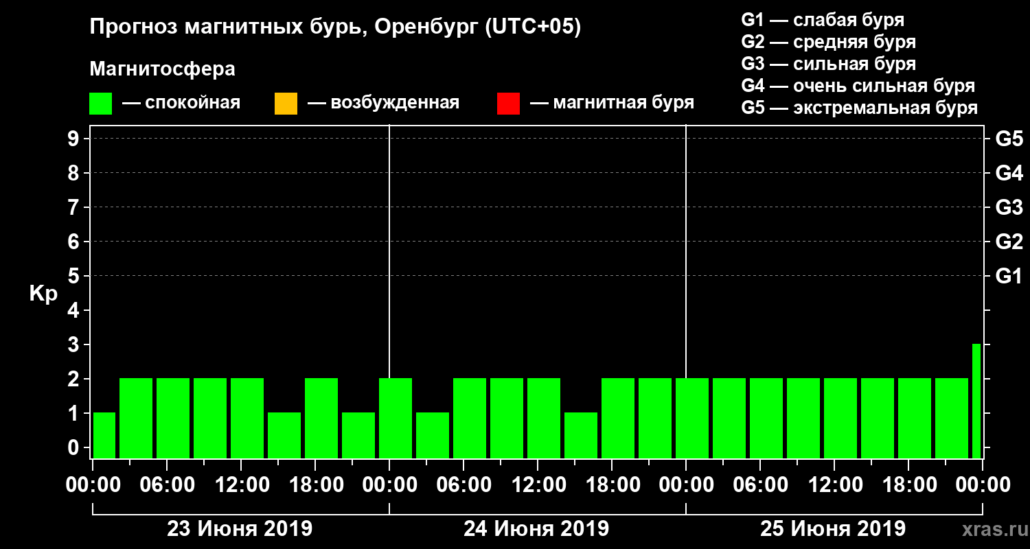 Прогноз магнитных бурь в Оренбурге на 23 июня 2019 года