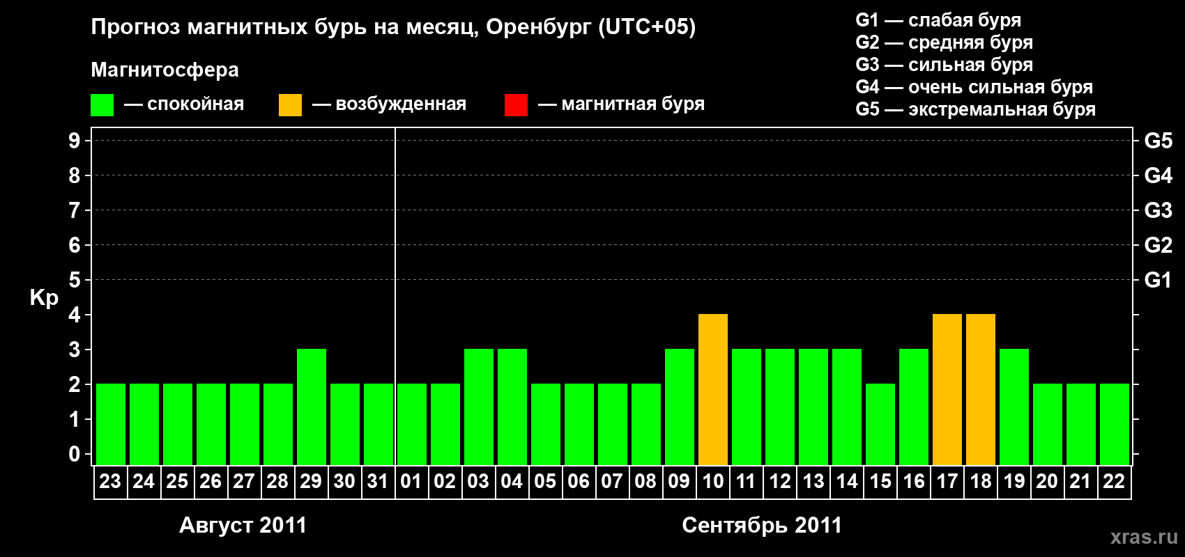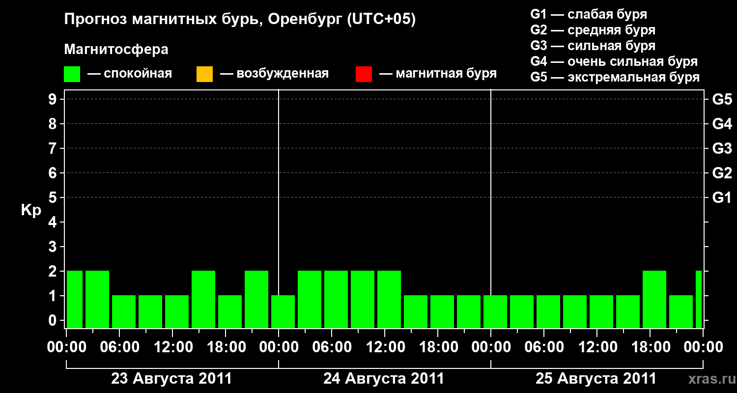 Прогноз магнитных бурь в Оренбурге — 23 августа 2011 года