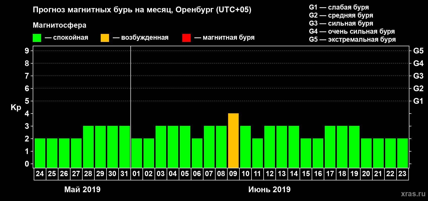 Прогноз магнитных бурь в Оренбурге на 24 мая 2019 года