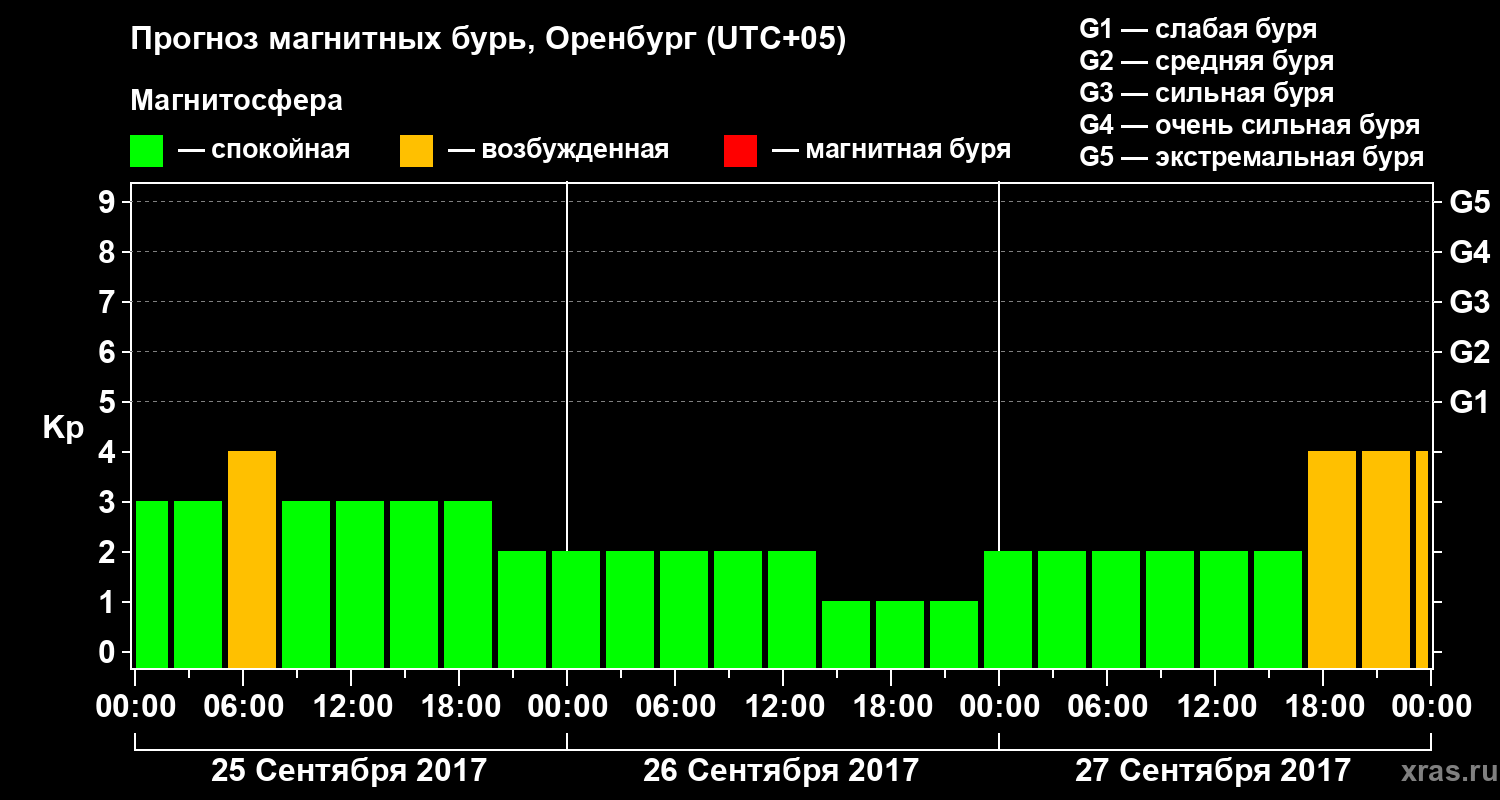 Прогноз магнитных бурь в Оренбурге на 25 сентября 2017 года