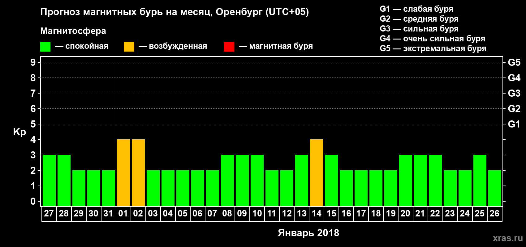 Прогноз магнитных бурь в Оренбурге на 27 декабря 2017 года