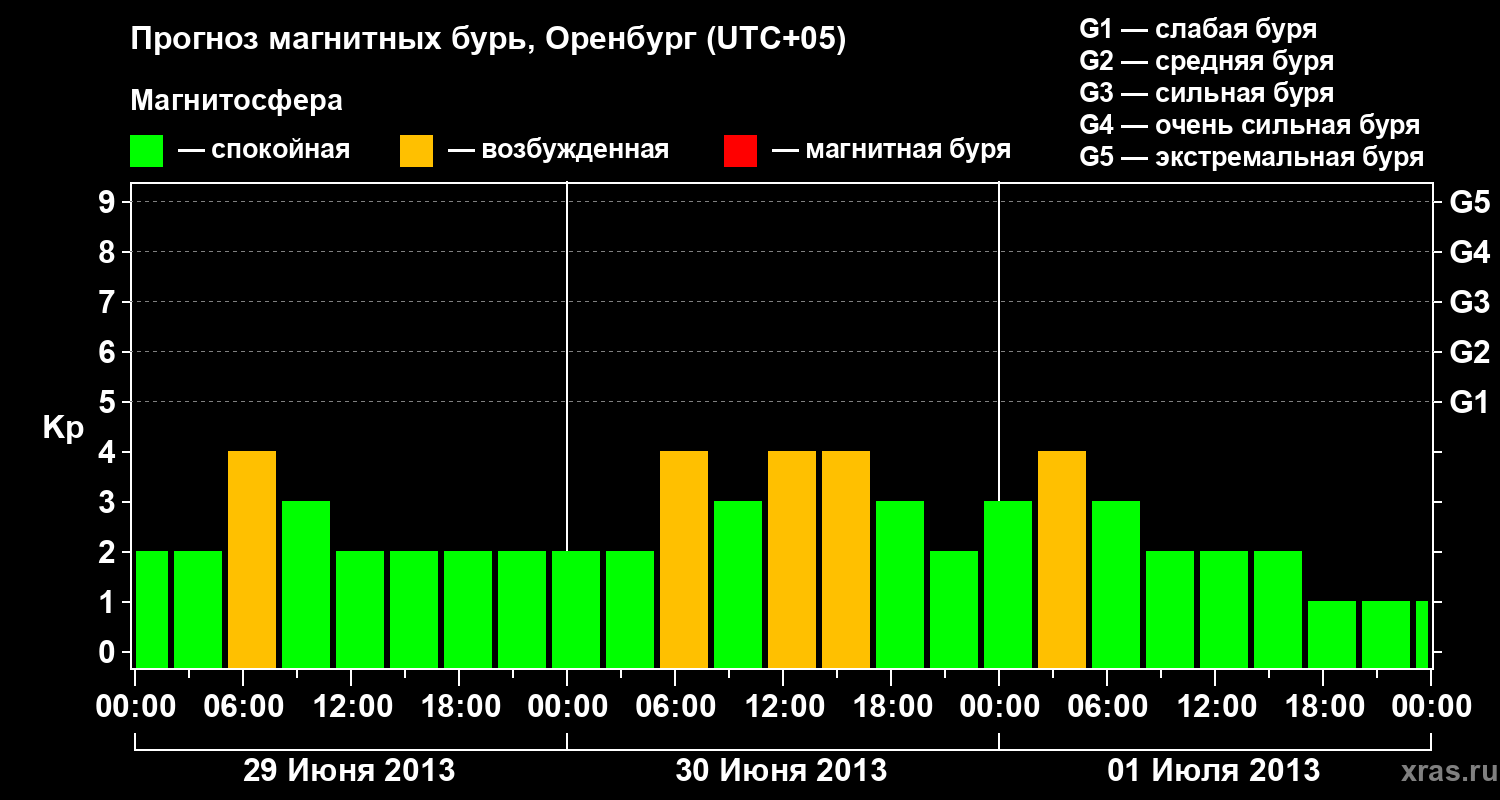 Прогноз магнитных бурь в Оренбурге — 29 июня 2013 года