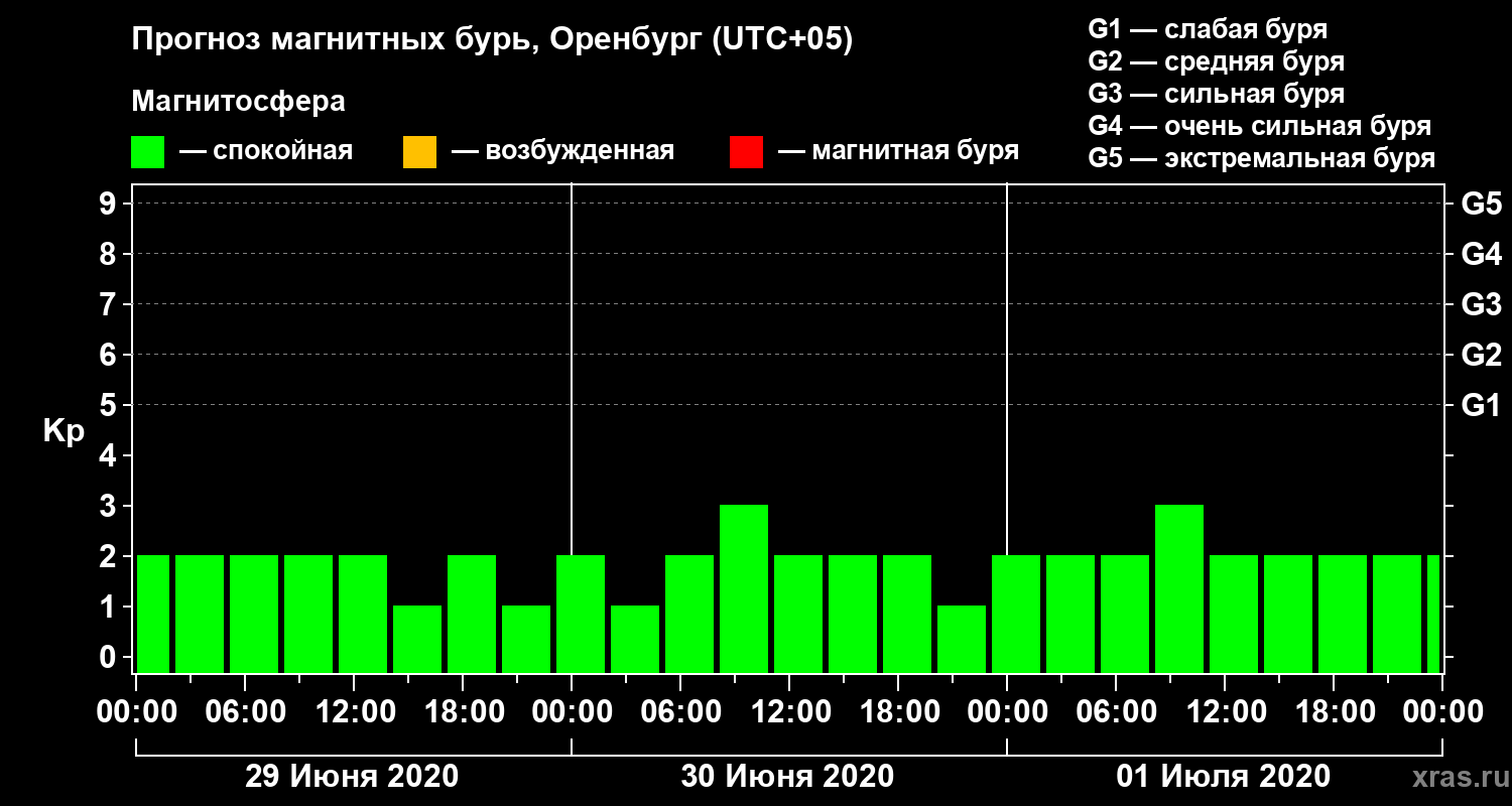 Прогноз магнитных бурь в Оренбурге на 29 июня 2020 года