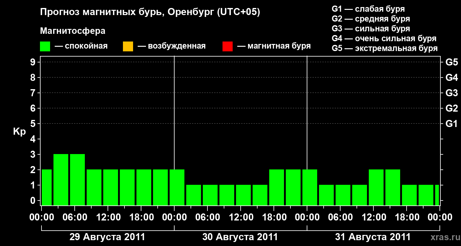 Прогноз магнитных бурь в Оренбурге — 29 августа 2011 года