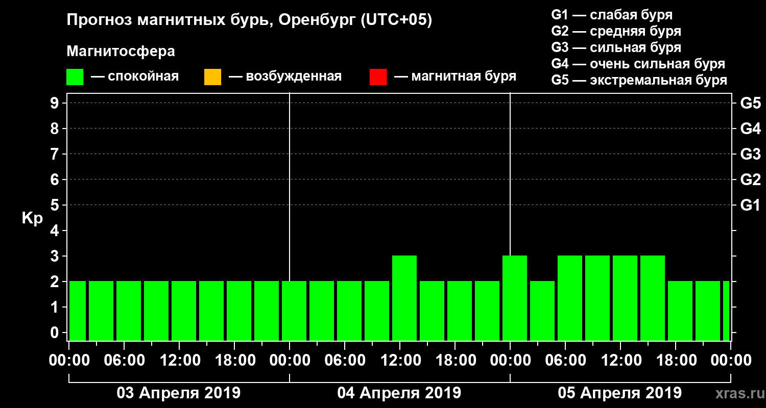 Прогноз магнитных бурь в Оренбурге на 3 апреля 2019 года