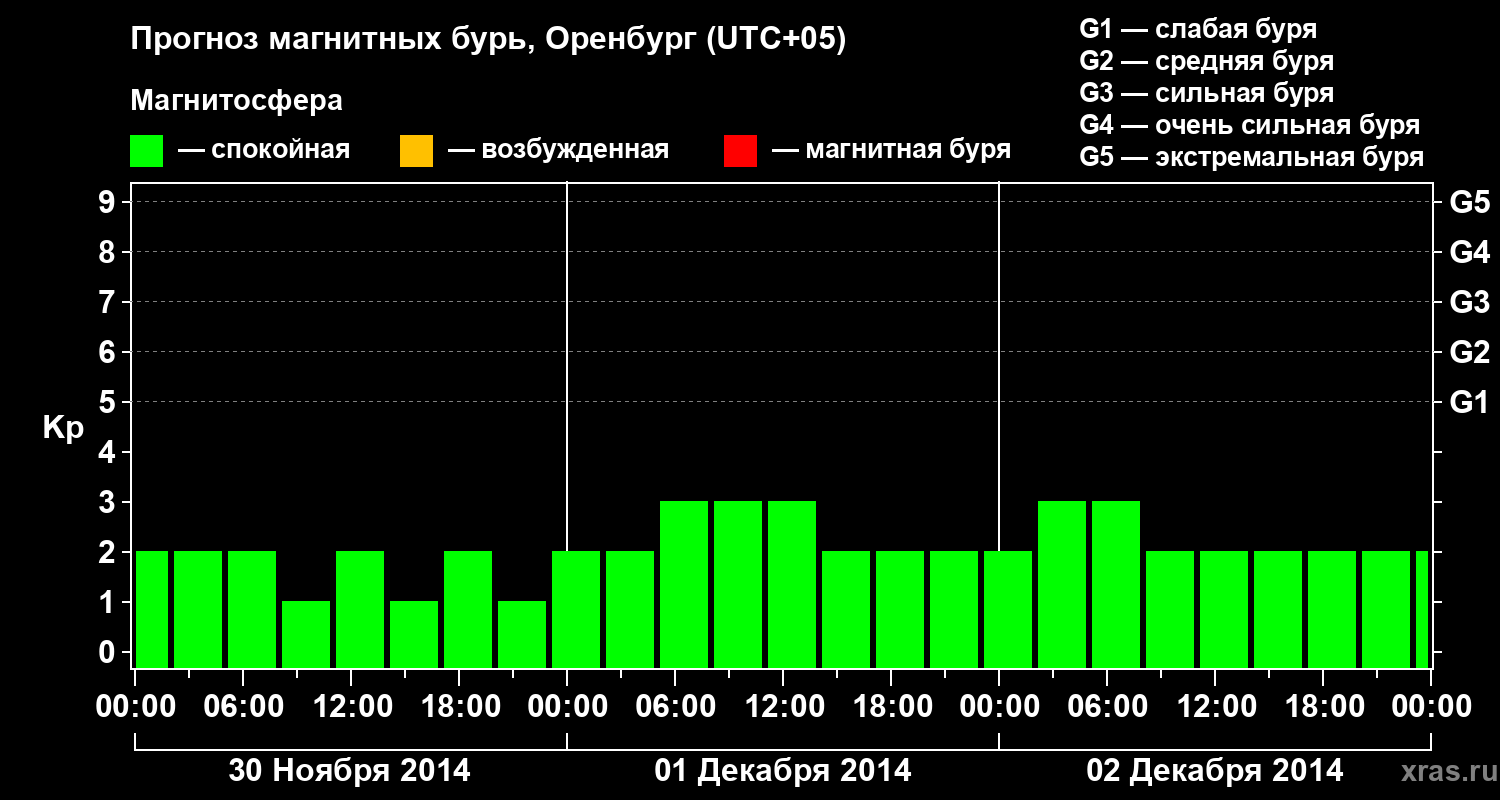 Прогноз магнитных бурь в Оренбурге — 30 ноября 2014 года