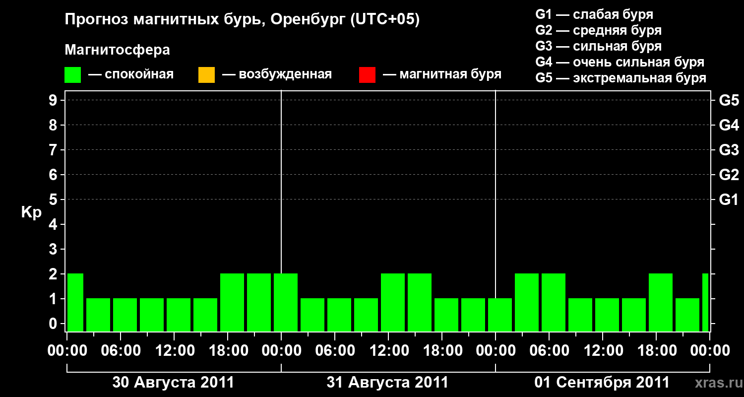 Прогноз магнитных бурь в Оренбурге — 30 августа 2011 года