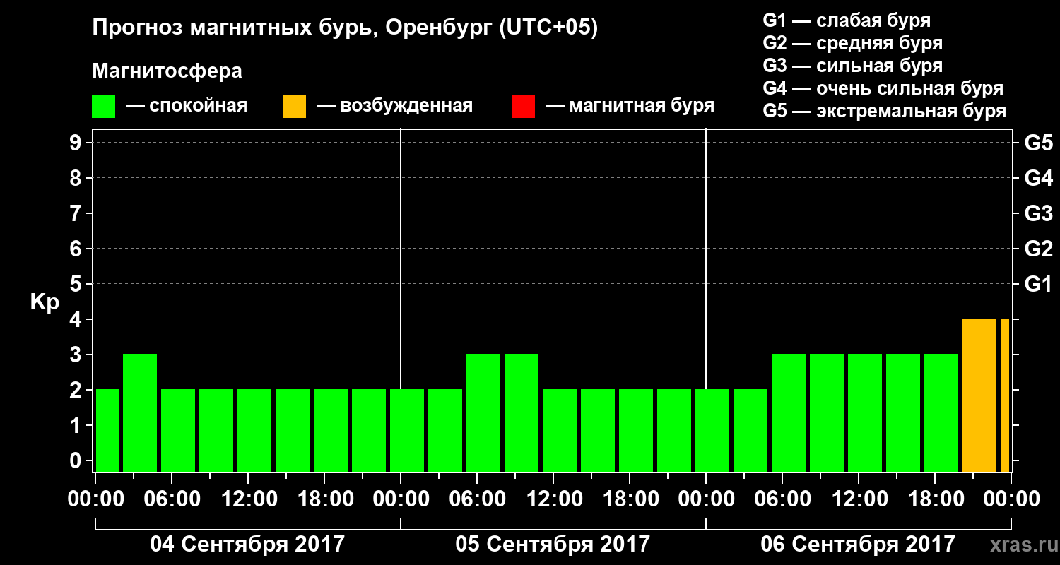Прогноз магнитных бурь в Оренбурге на 4 сентября 2017 года