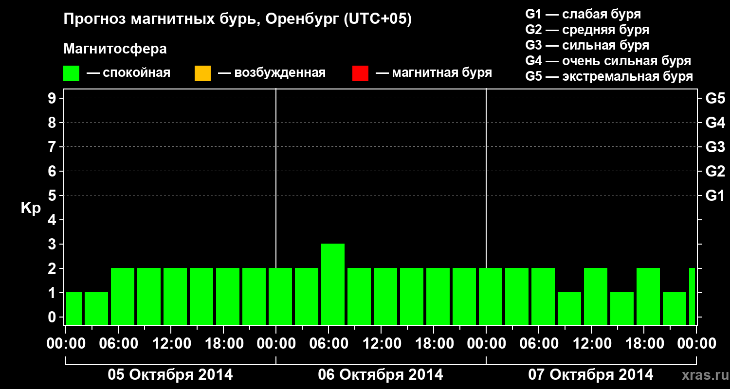 Прогноз магнитных бурь в Оренбурге — 5 октября 2014 года