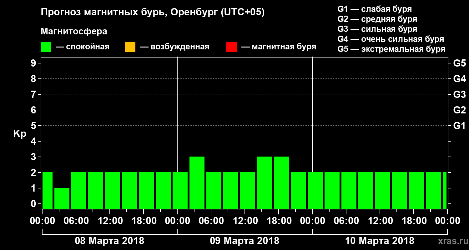 Прогноз магнитных бурь в Оренбурге — 8 марта 2018 года