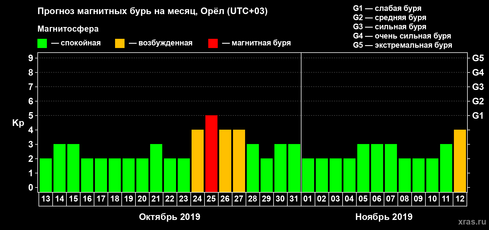 Прогноз магнитных бурь Орле — 13 октября 2019 года