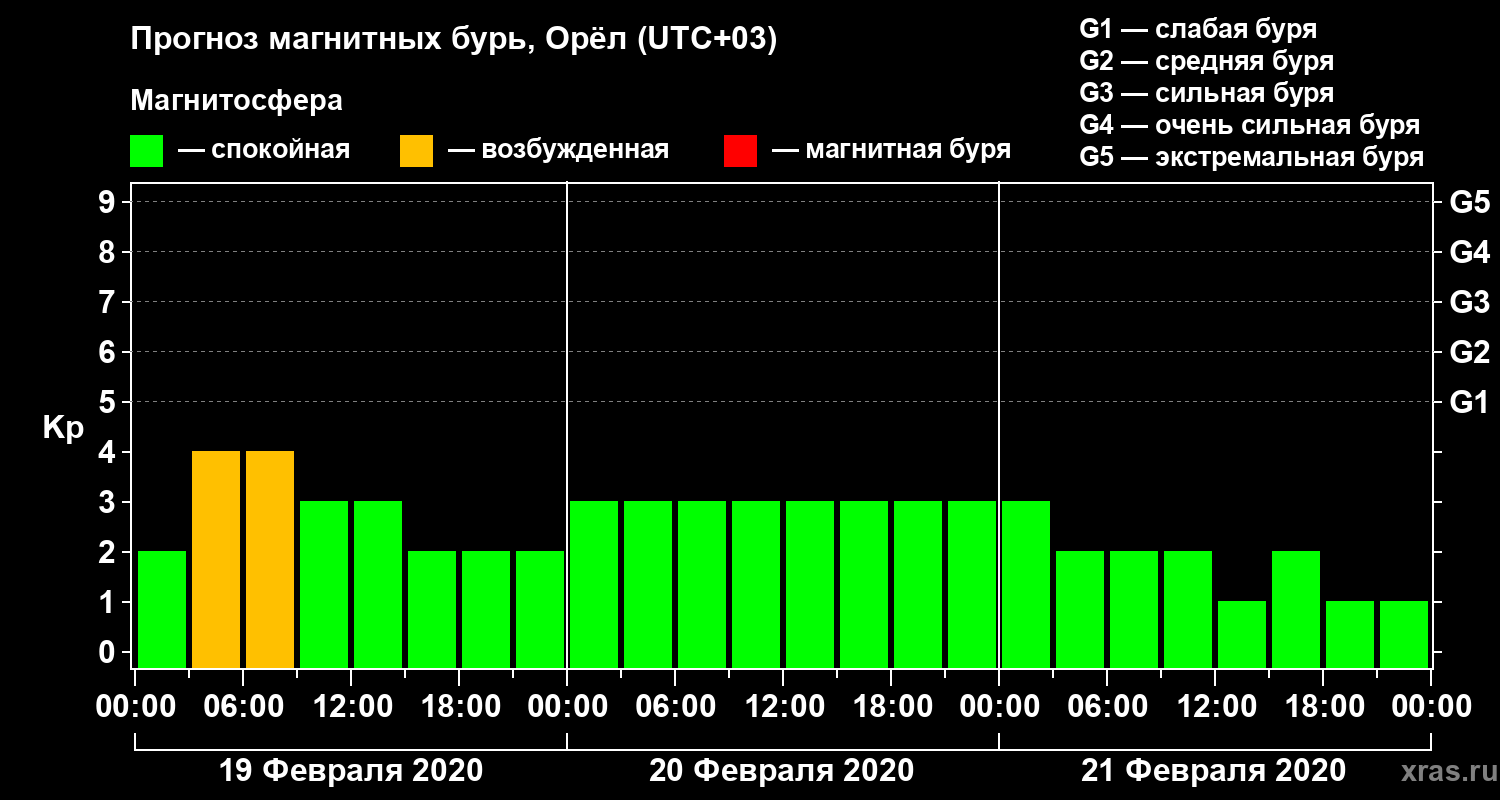 Прогноз магнитных бурь Орле — 19 февраля 2020 года