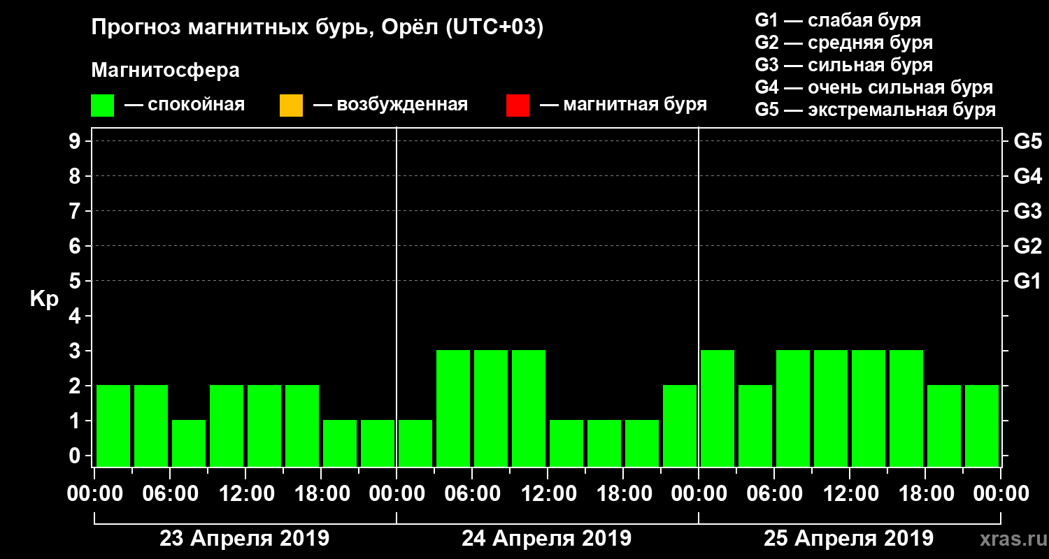 Прогноз магнитных бурь Орле на 23 апреля 2019 года