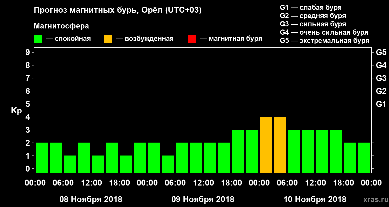 Прогноз магнитных бурь Орле — 8 ноября 2018 года