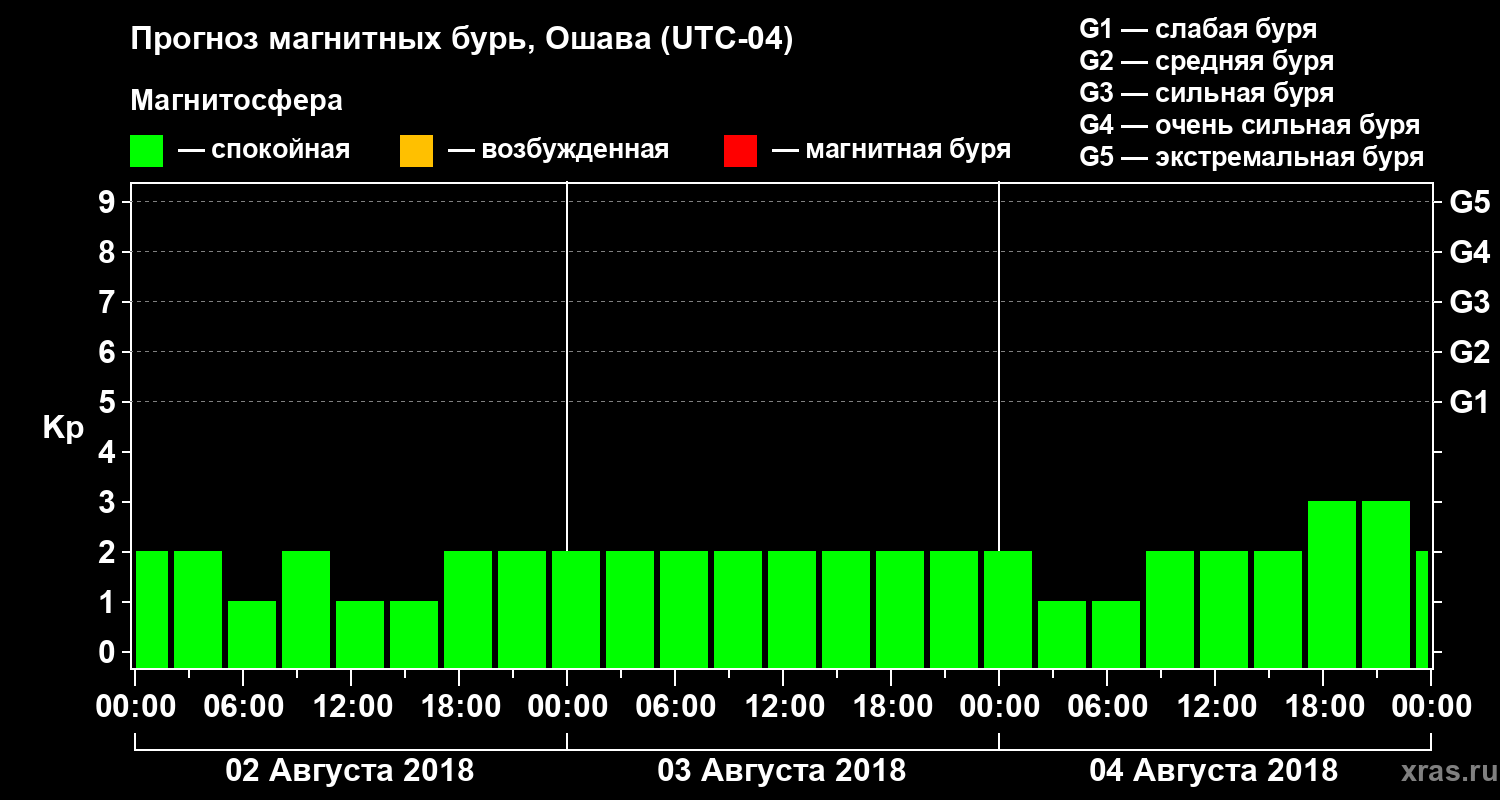 Прогноз магнитных бурь в Ошаве на 2 августа 2018 года