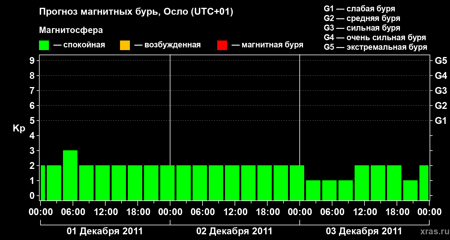 Прогноз магнитных бурь Осло — 1 декабря 2011 года