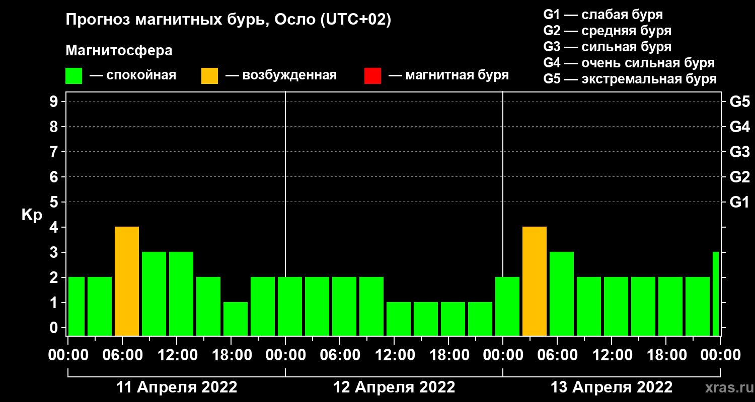 Прогноз магнитных бурь Осло — 11 апреля 2022 года
