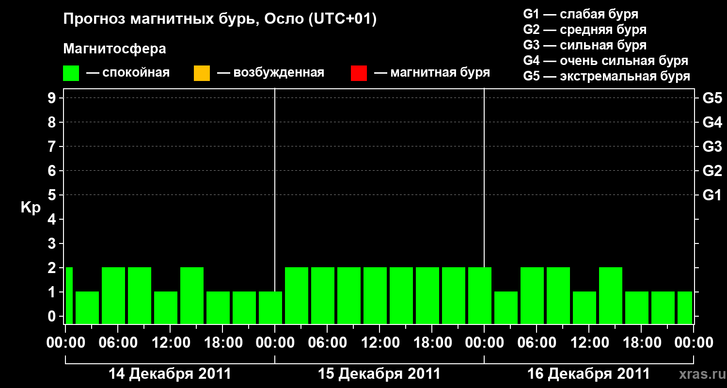 Прогноз магнитных бурь Осло — 14 декабря 2011 года