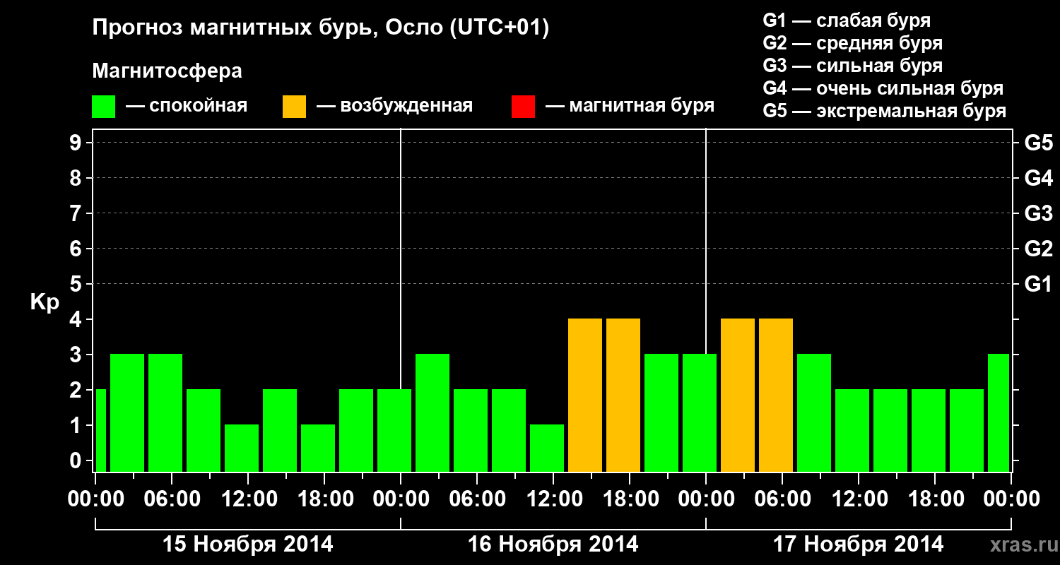 Прогноз магнитных бурь Осло — 15 ноября 2014 года