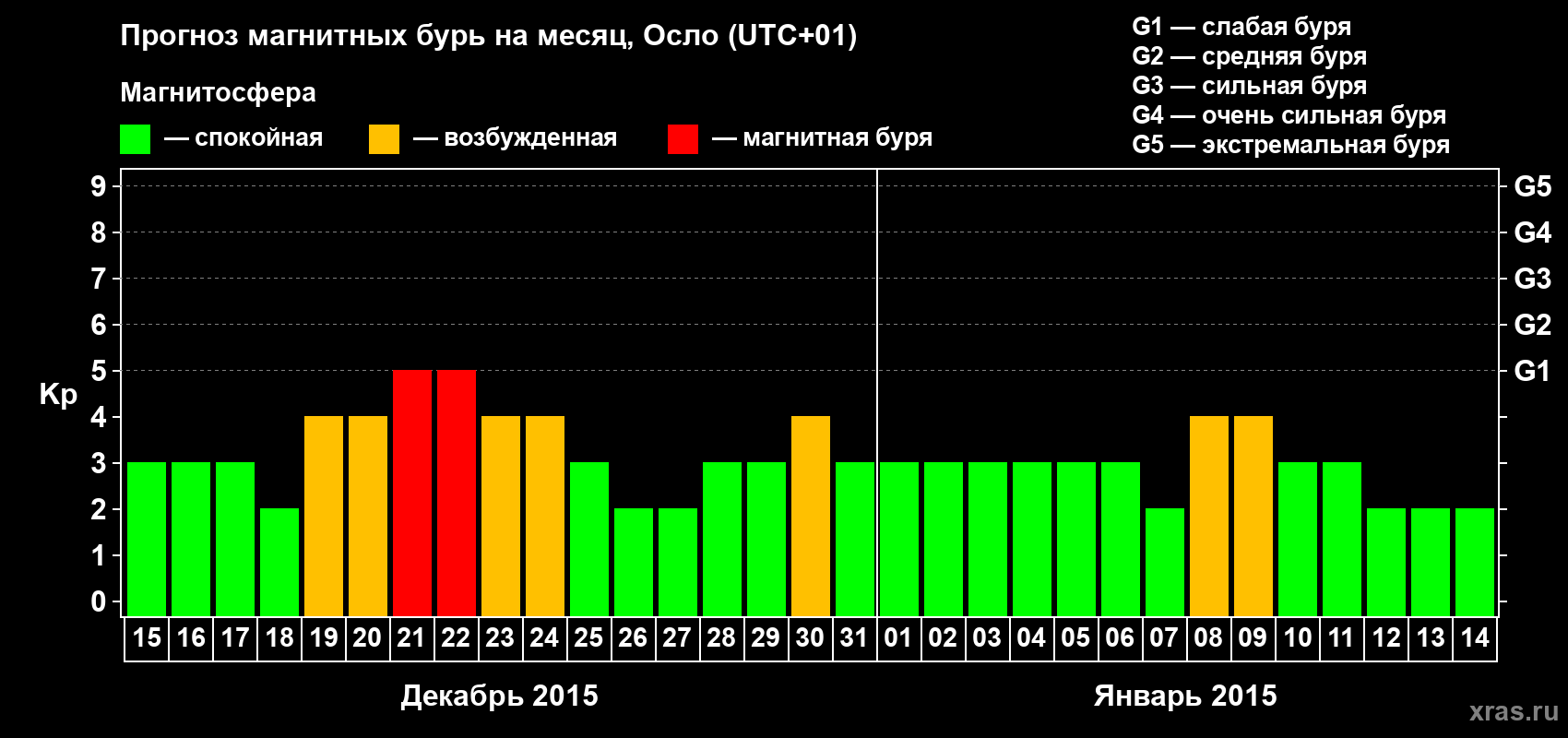 Прогноз магнитных бурь Осло — 15 декабря 2014 года