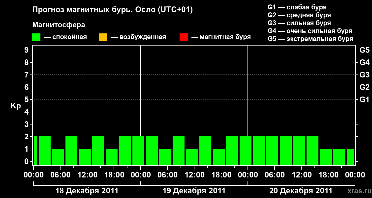 Прогноз магнитных бурь Осло на 18 декабря 2011 года