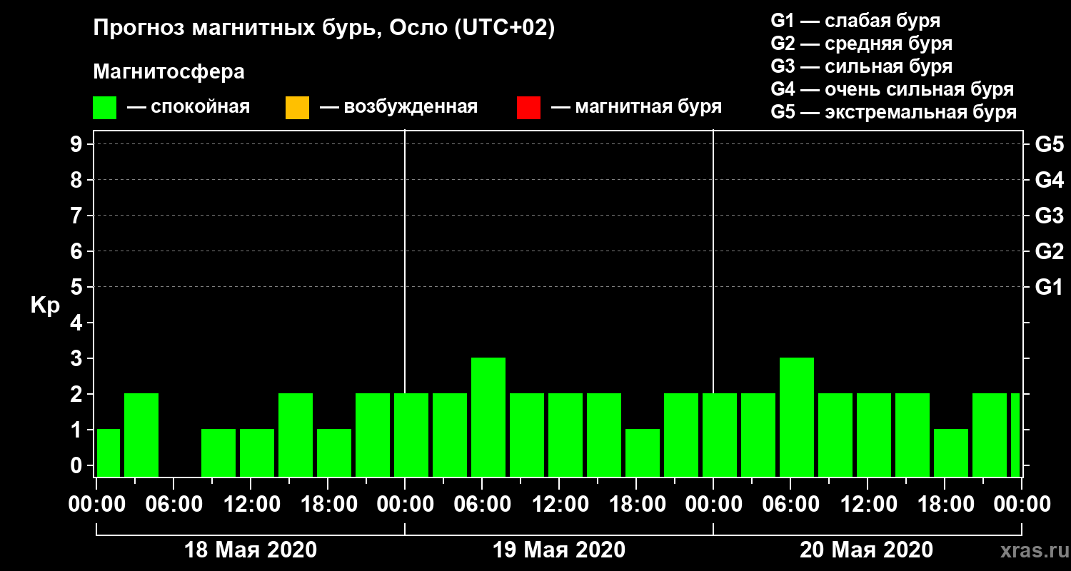 Прогноз магнитных бурь Осло — 18 мая 2020 года