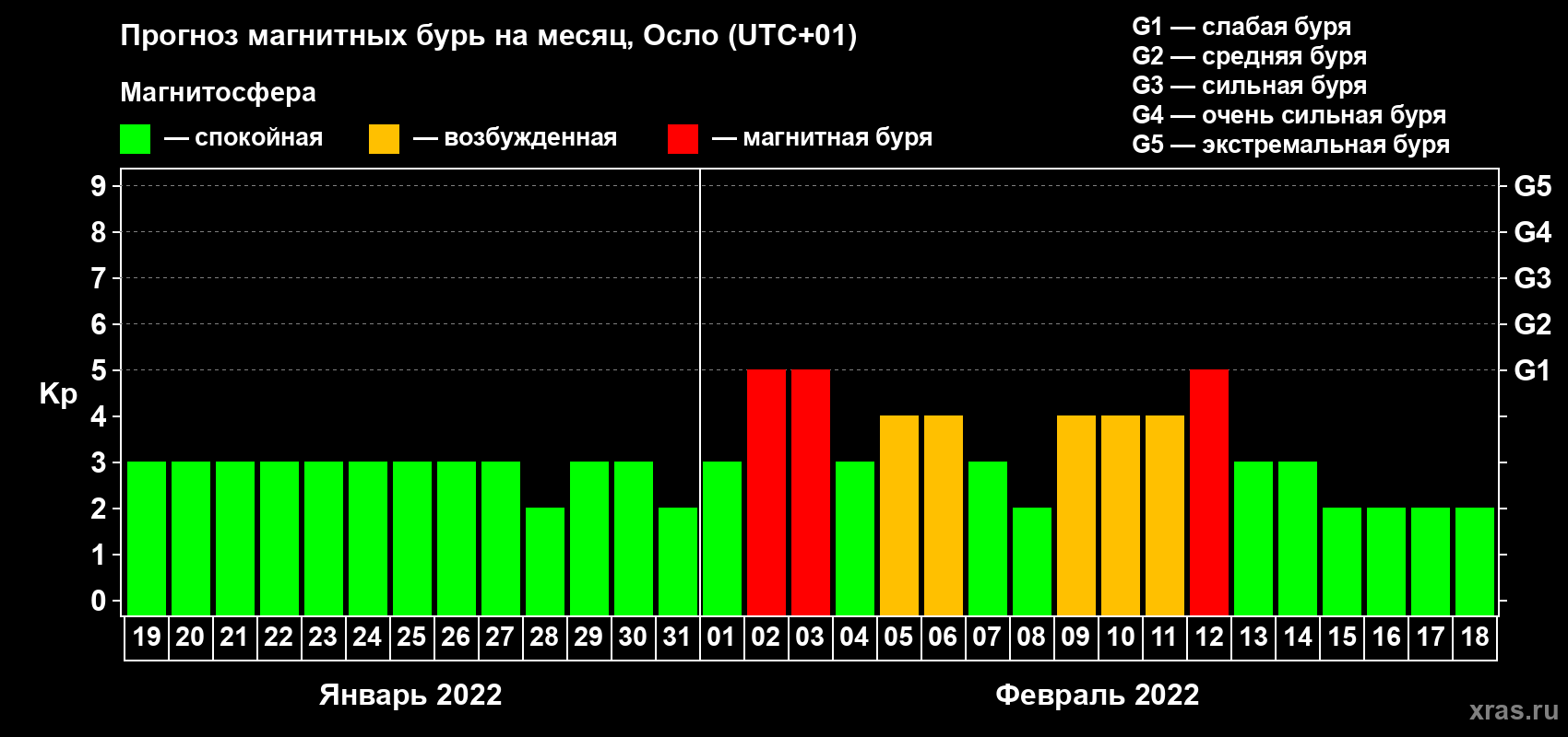 Прогноз магнитных бурь Осло — 19 января 2022 года