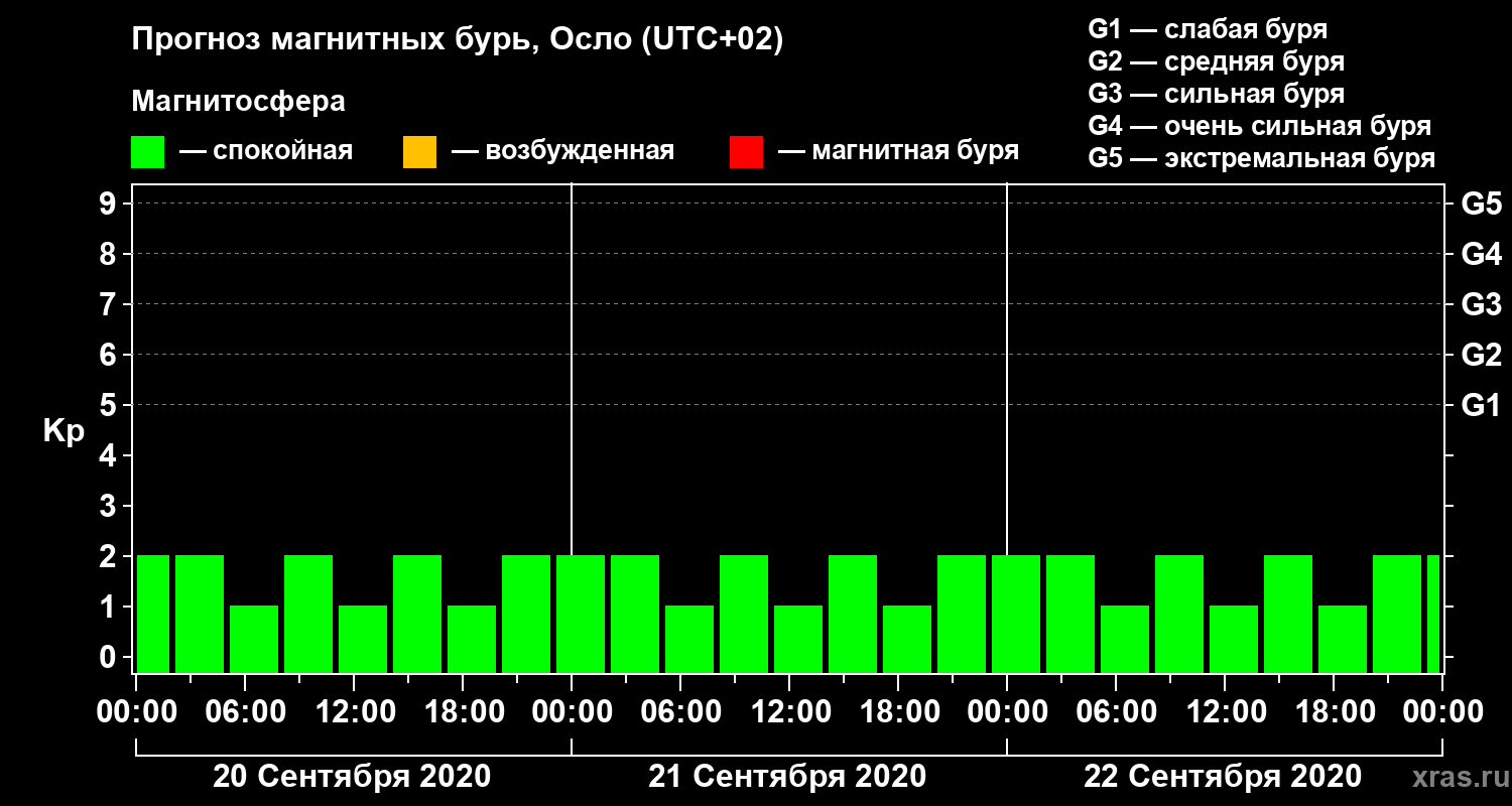 Прогноз магнитных бурь Осло — 20 сентября 2020 года