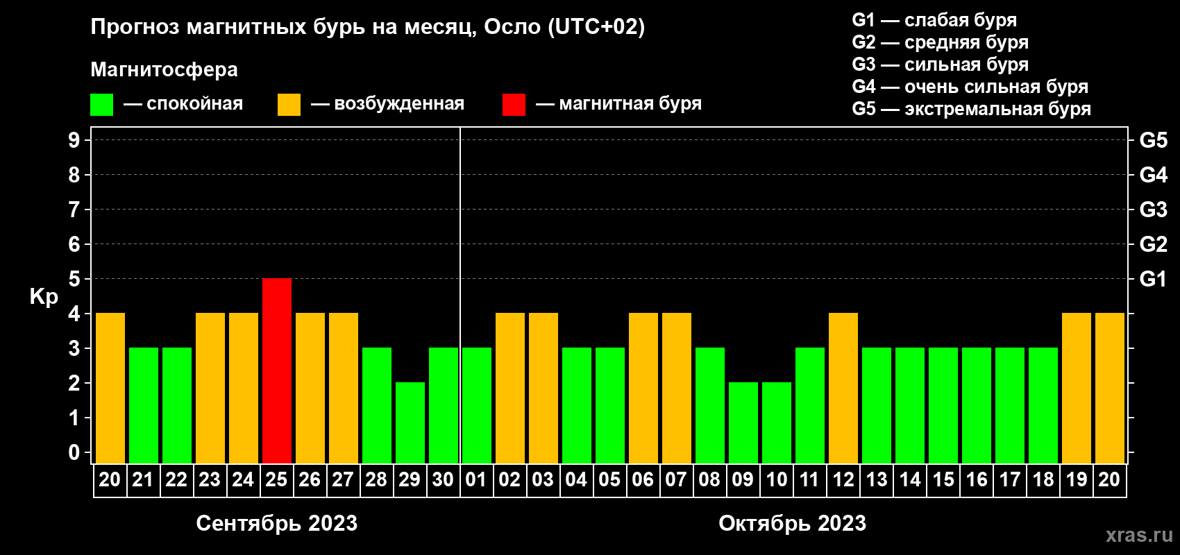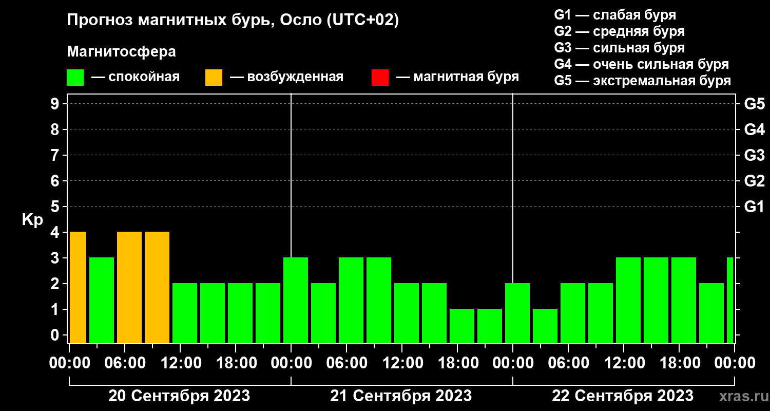 Прогноз магнитных бурь Осло — 20 сентября 2023 года