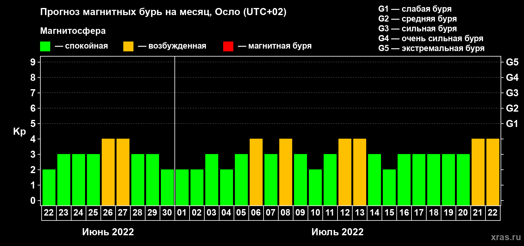 Прогноз магнитных бурь Осло — 22 июня 2022 года