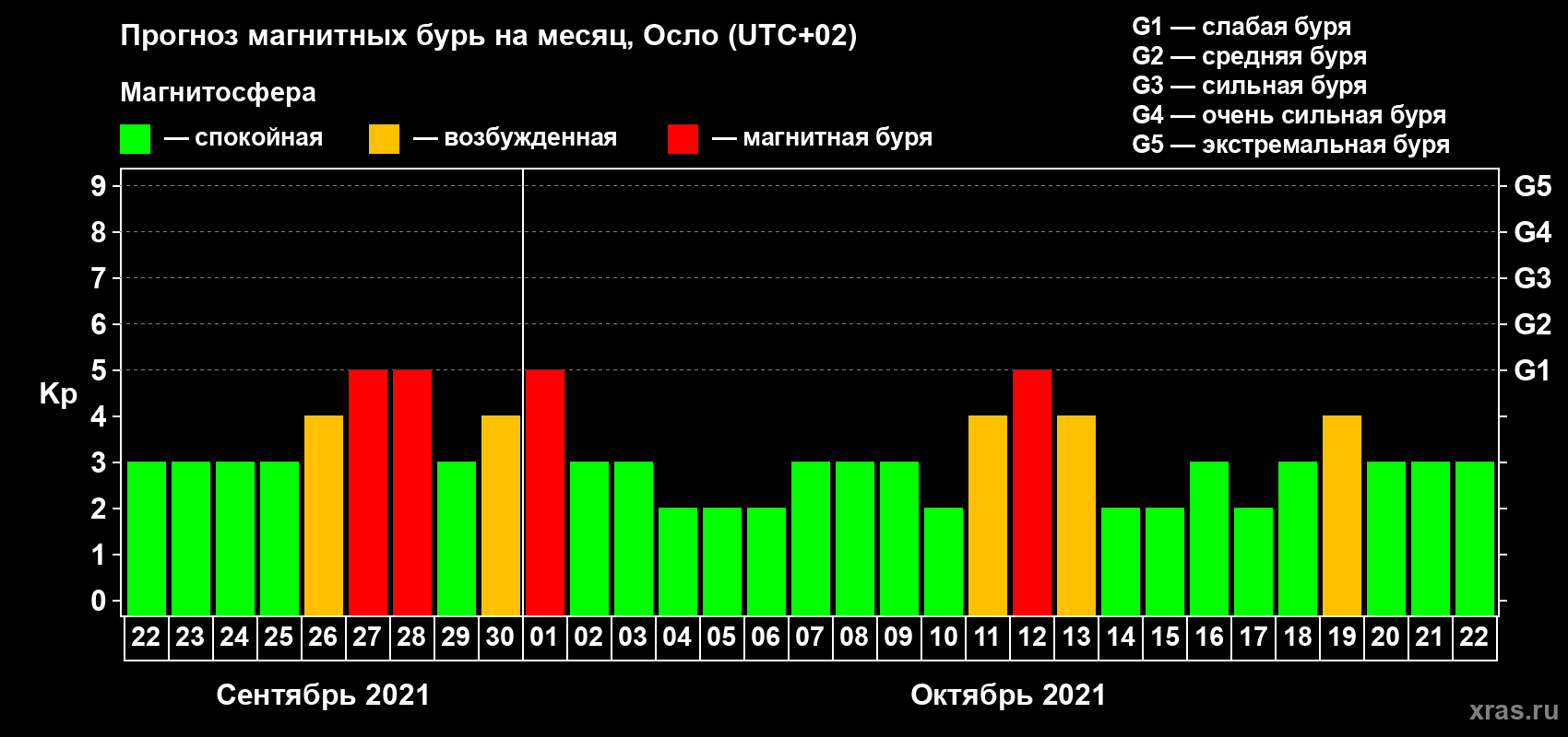 Прогноз магнитных бурь Осло — 22 сентября 2021 года