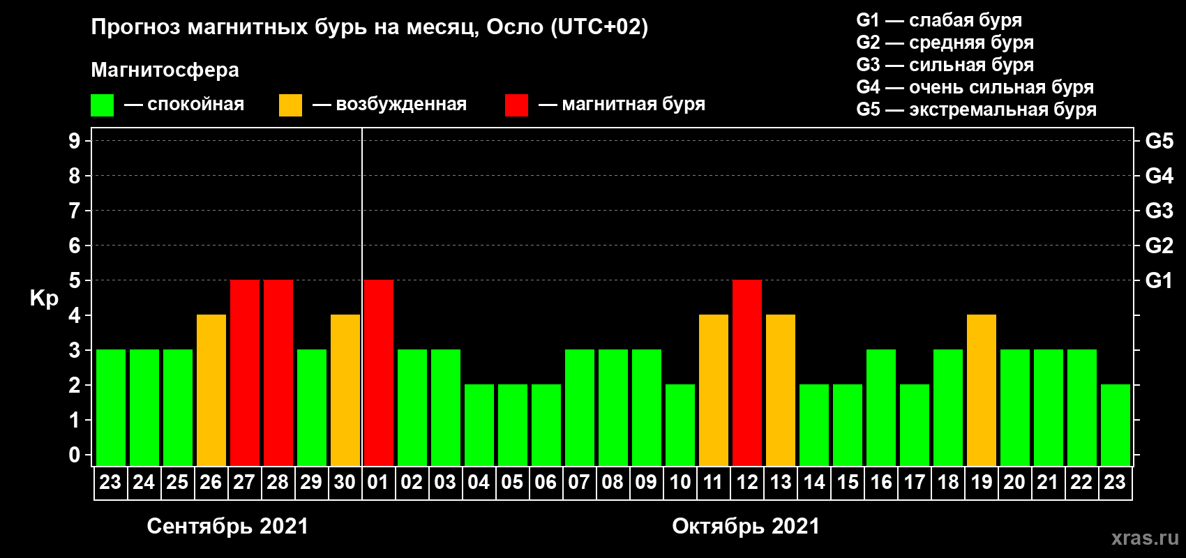 Прогноз магнитных бурь Осло — 23 сентября 2021 года