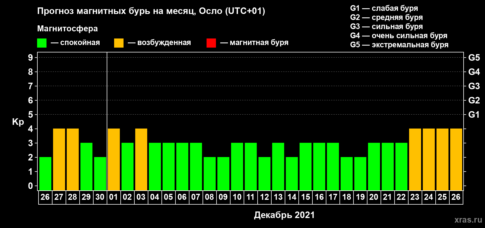 Прогноз магнитных бурь Осло — 26 ноября 2021 года