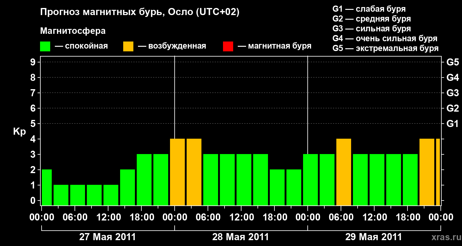 Прогноз магнитных бурь Осло — 27 мая 2011 года
